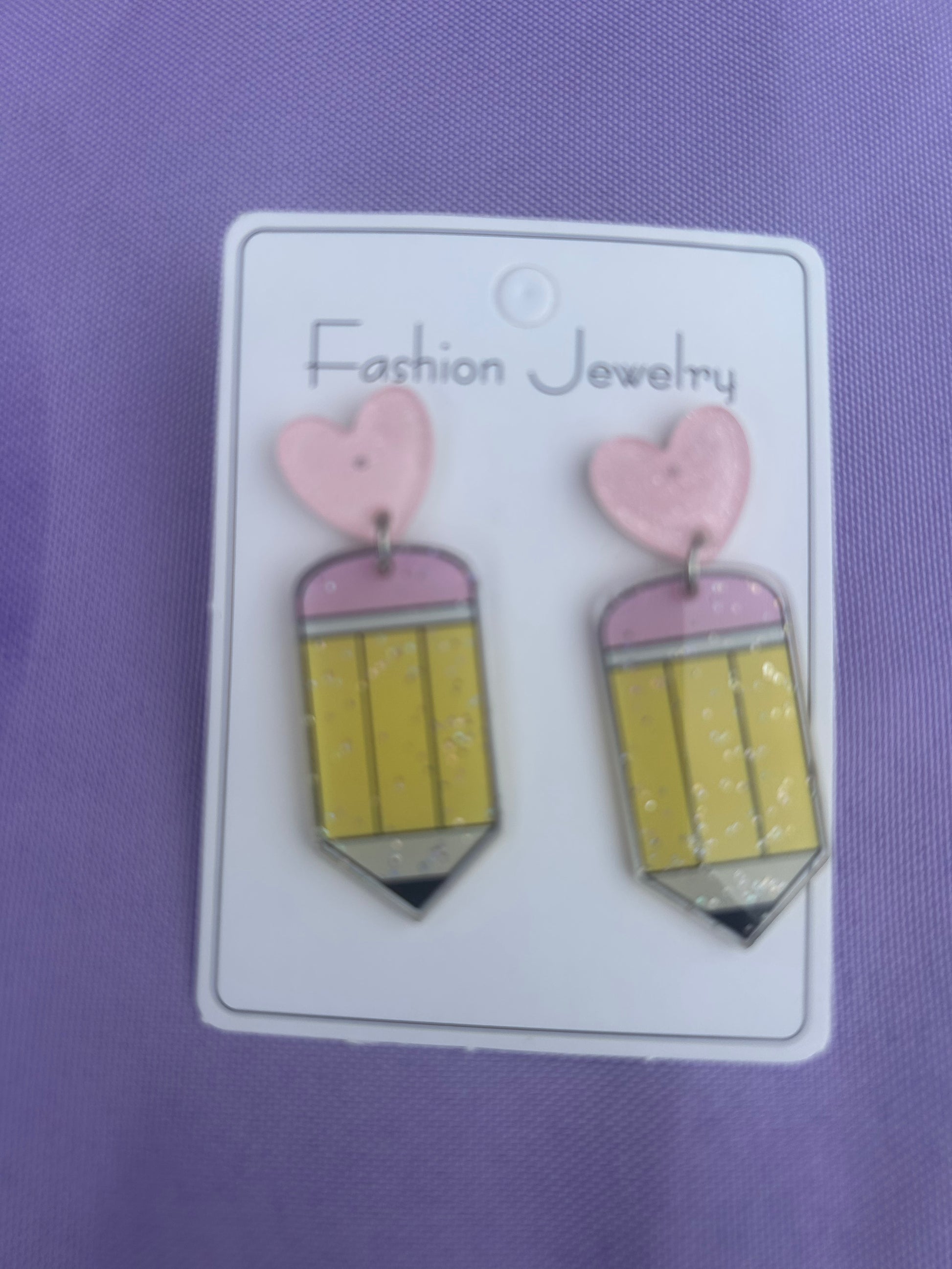 Lightweight and sparkly acrylic pencil earrings. Perfect for back to school, or your favorite teacher.