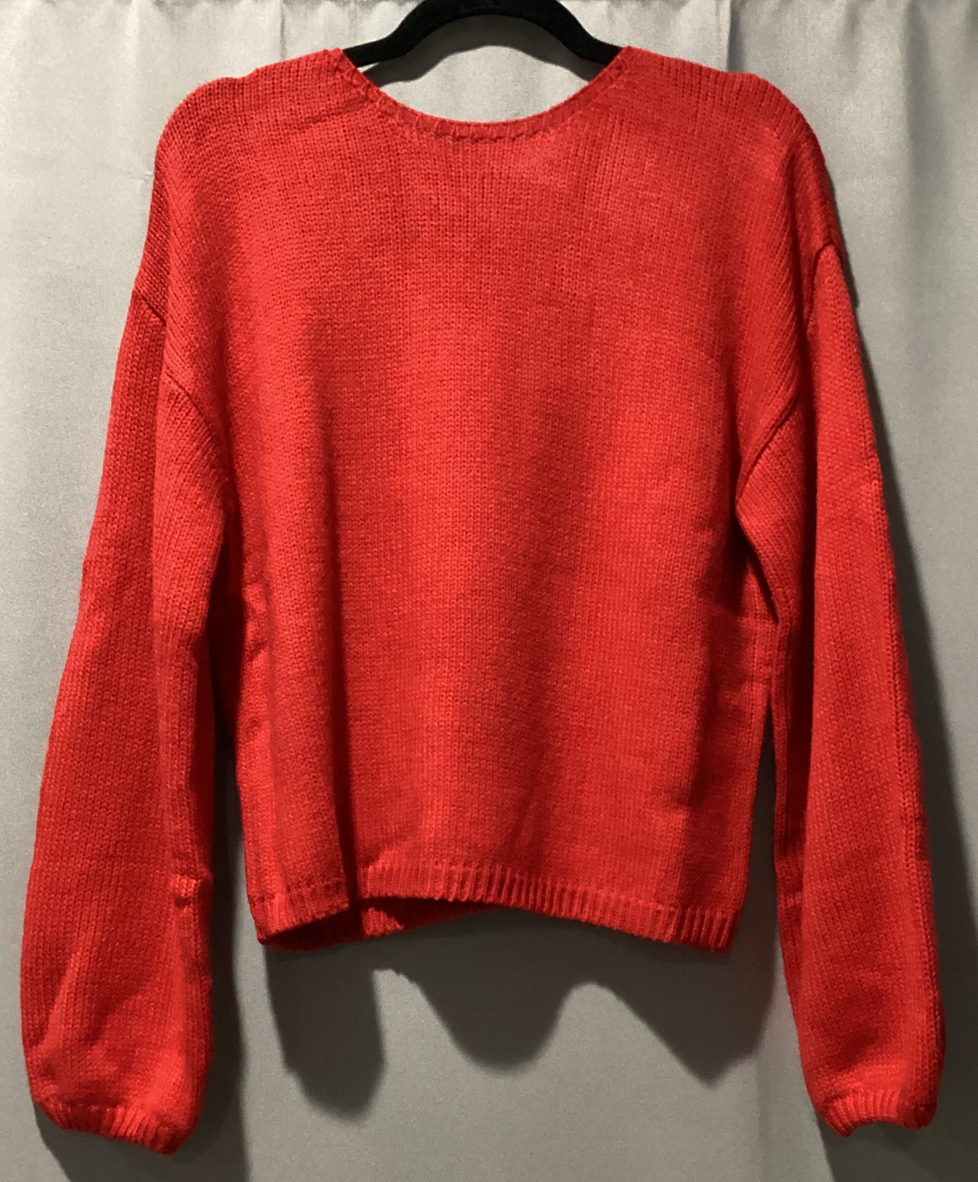 Fiery, red, festive bow, backless bubble sleeve sweater