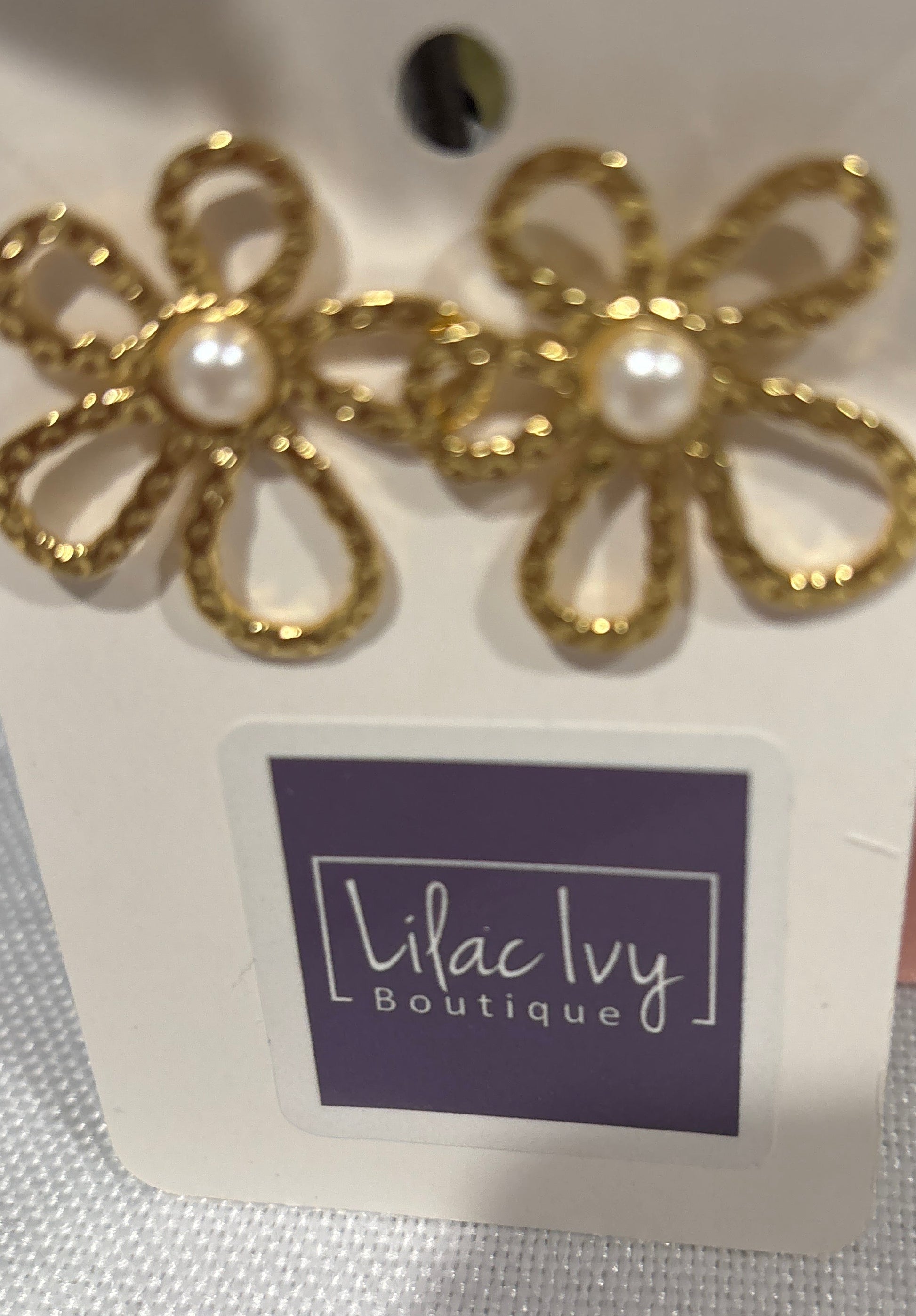 Gold flower with pearl center earrings