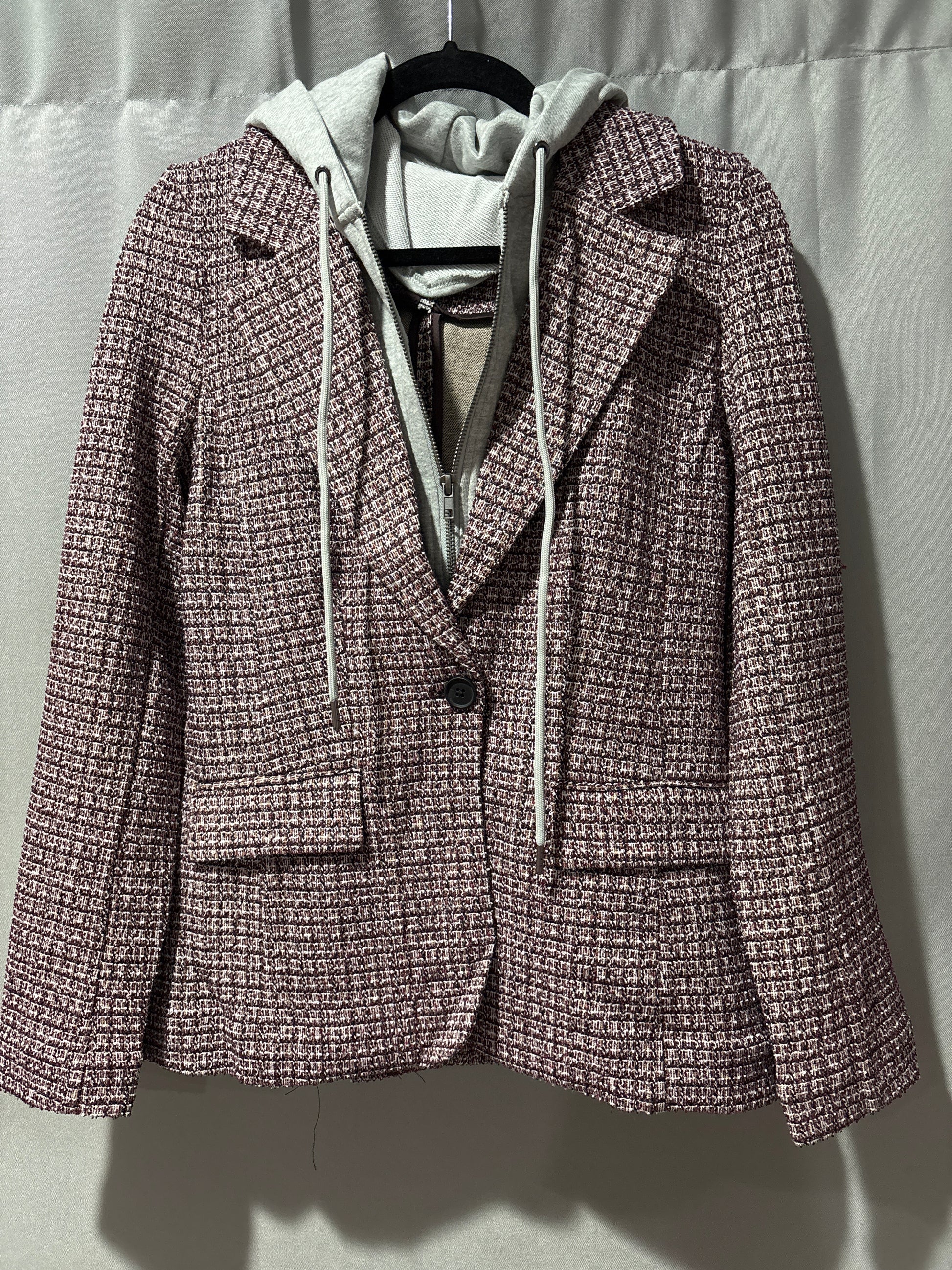 Stylish and chic boyfriend blazer with removable hood. Looks exceptionally good with the Geo glider, slim black pants.